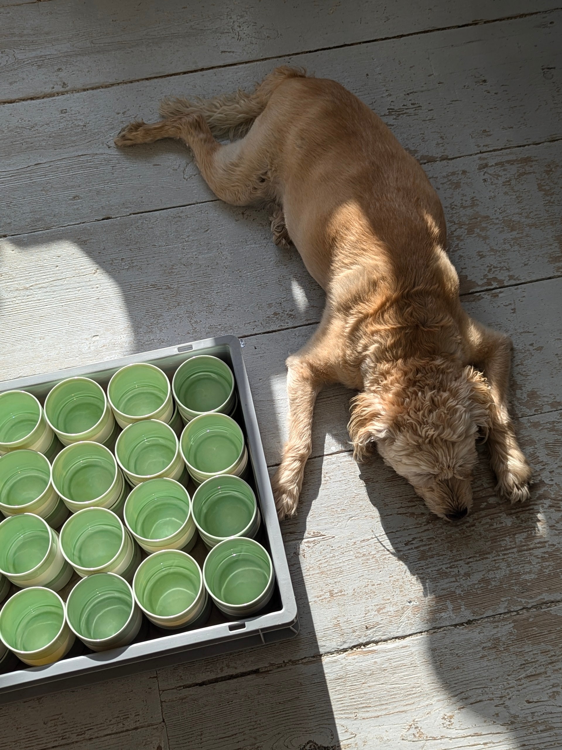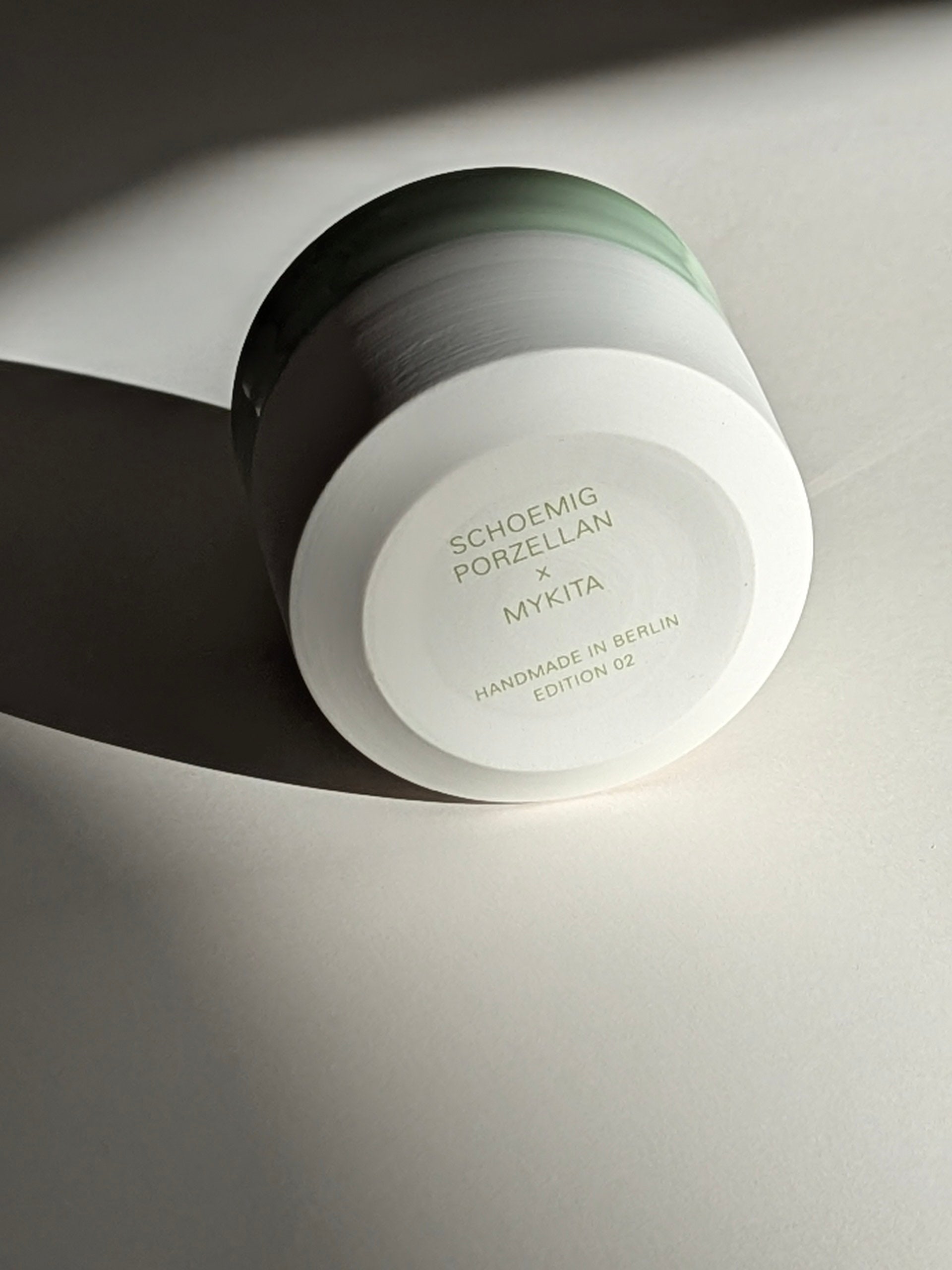 In 2024 and 2023 we crafted two bespoke editions of porcelain tumblers for MYKITA. Every piece wandered through our dedicated hands in twelve work cycles in our Berlin studio.